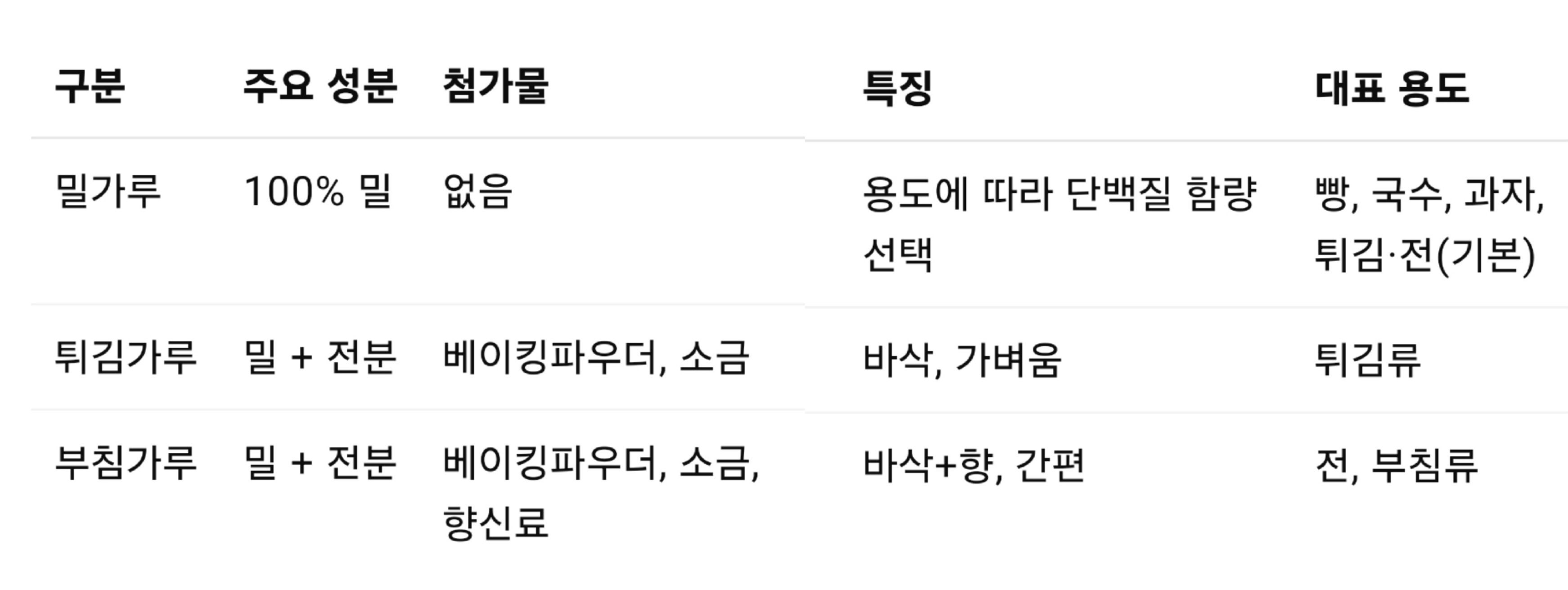 📎 전 종류별 가루 선택은 맛의 완성도를 높이는 핵심입니다.