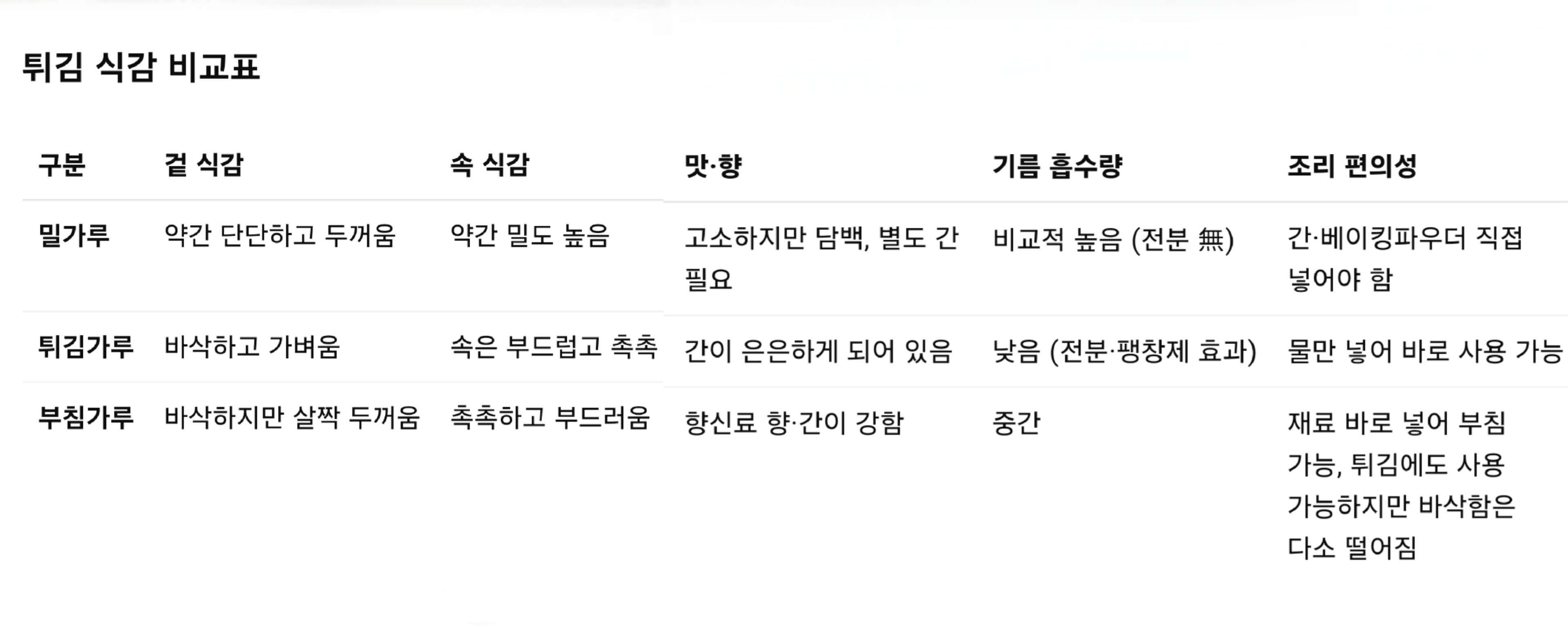 ■튀김가루 → 바삭함 + 가벼움 최우선일 때
