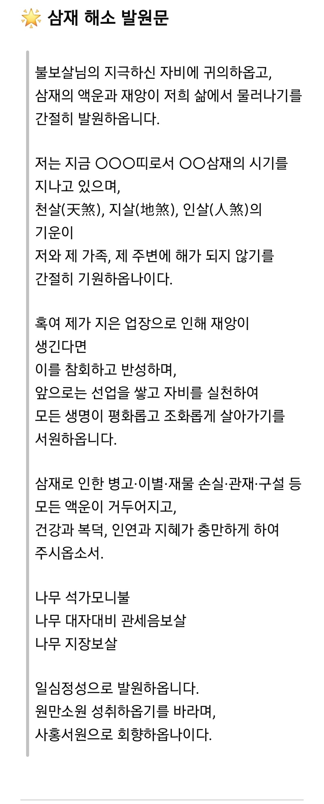 전통 불교와 민간신앙에서 실제로 사용되는 내용을 기반으로 정중하고 격식 있게 작성된 진언·발원문 형식