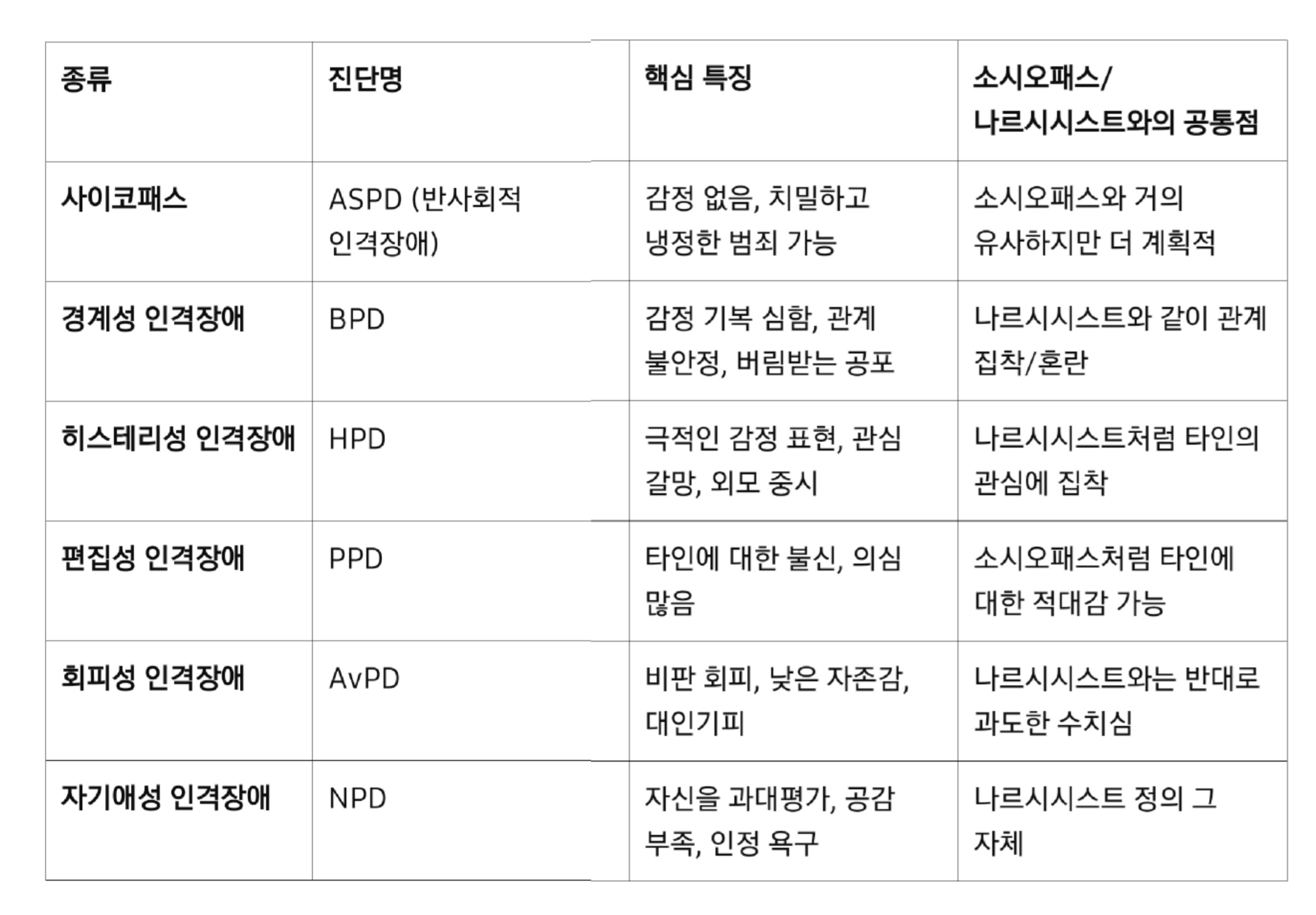 소시오패스·나르시시스트와 비슷한 인격장애