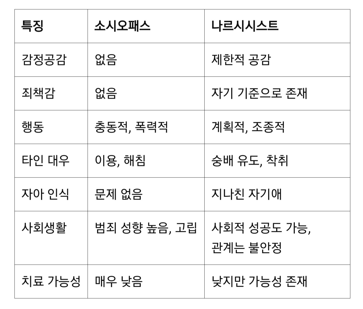 둘 다 반사회적 성향을 지닌 인격장애지만, 전혀 다릅니다.