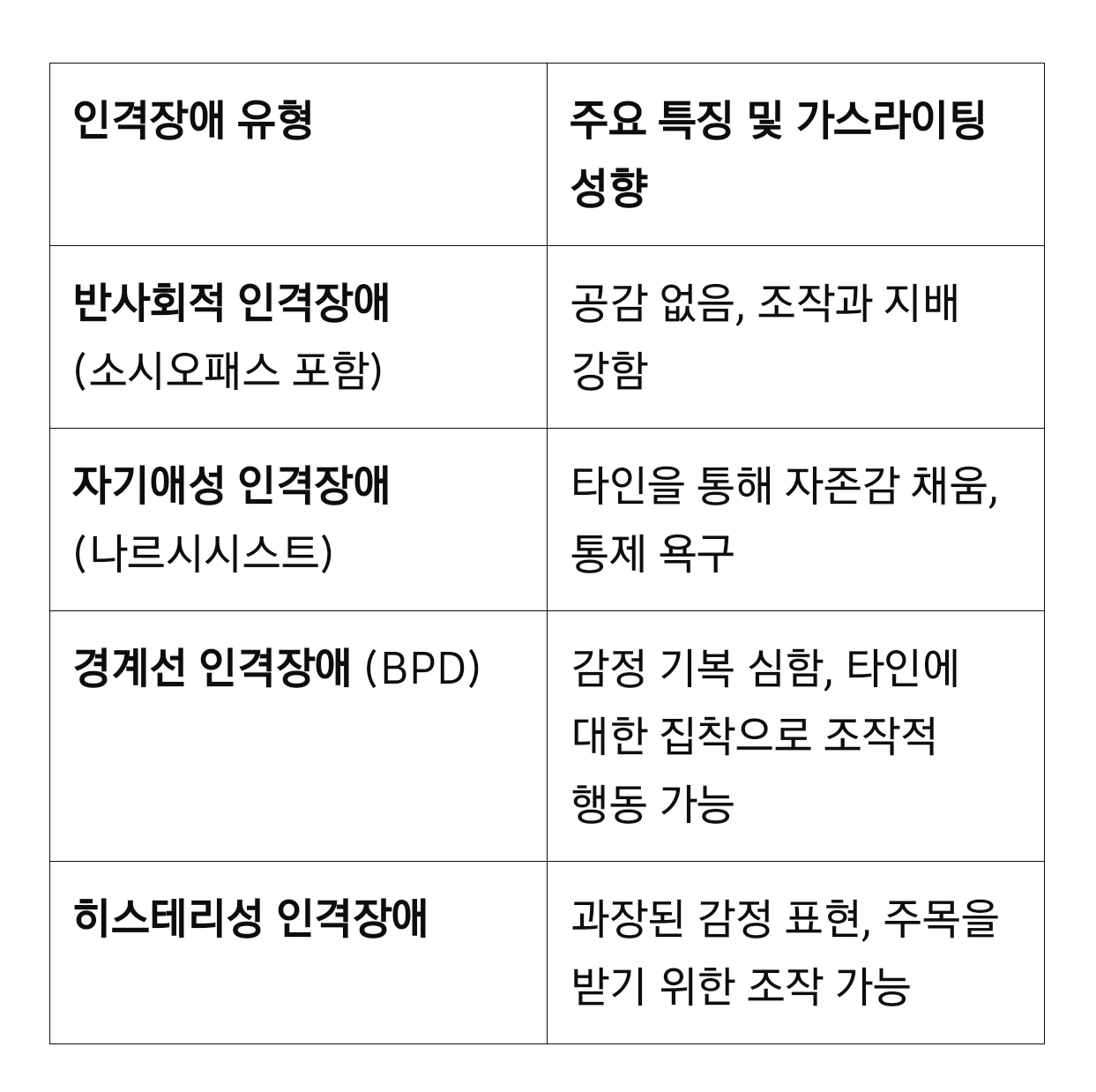 가스라이팅 성향이 강한 인격장애 정리