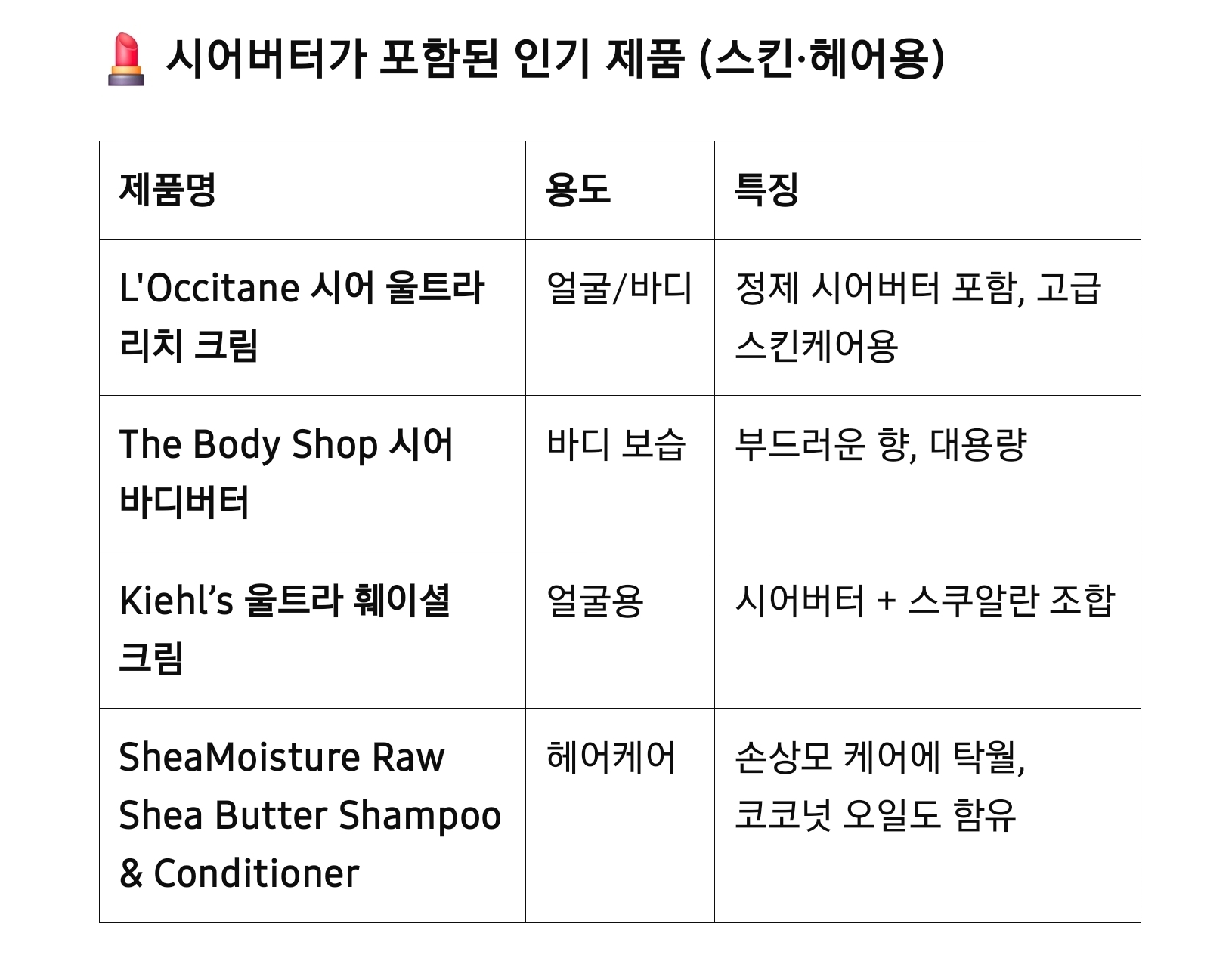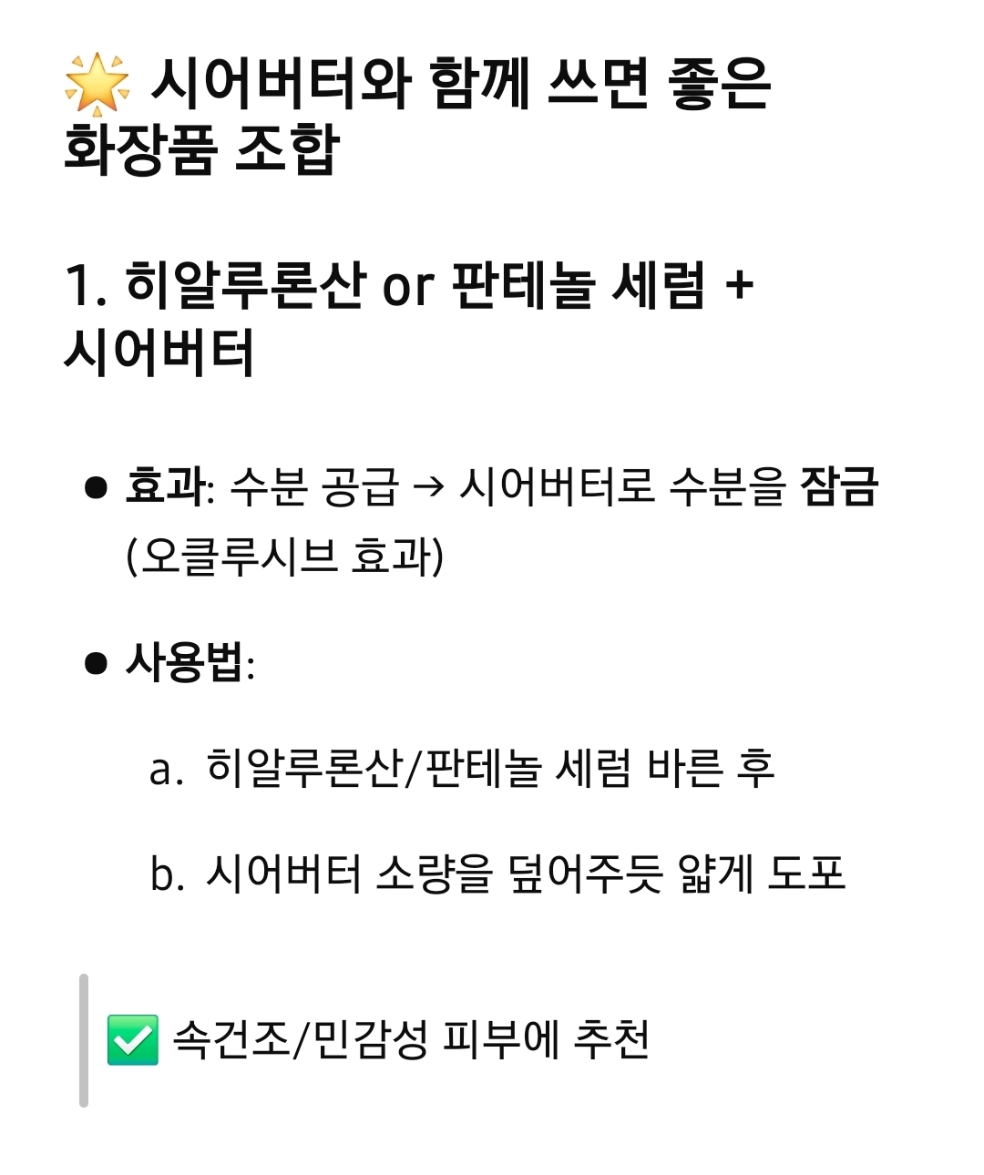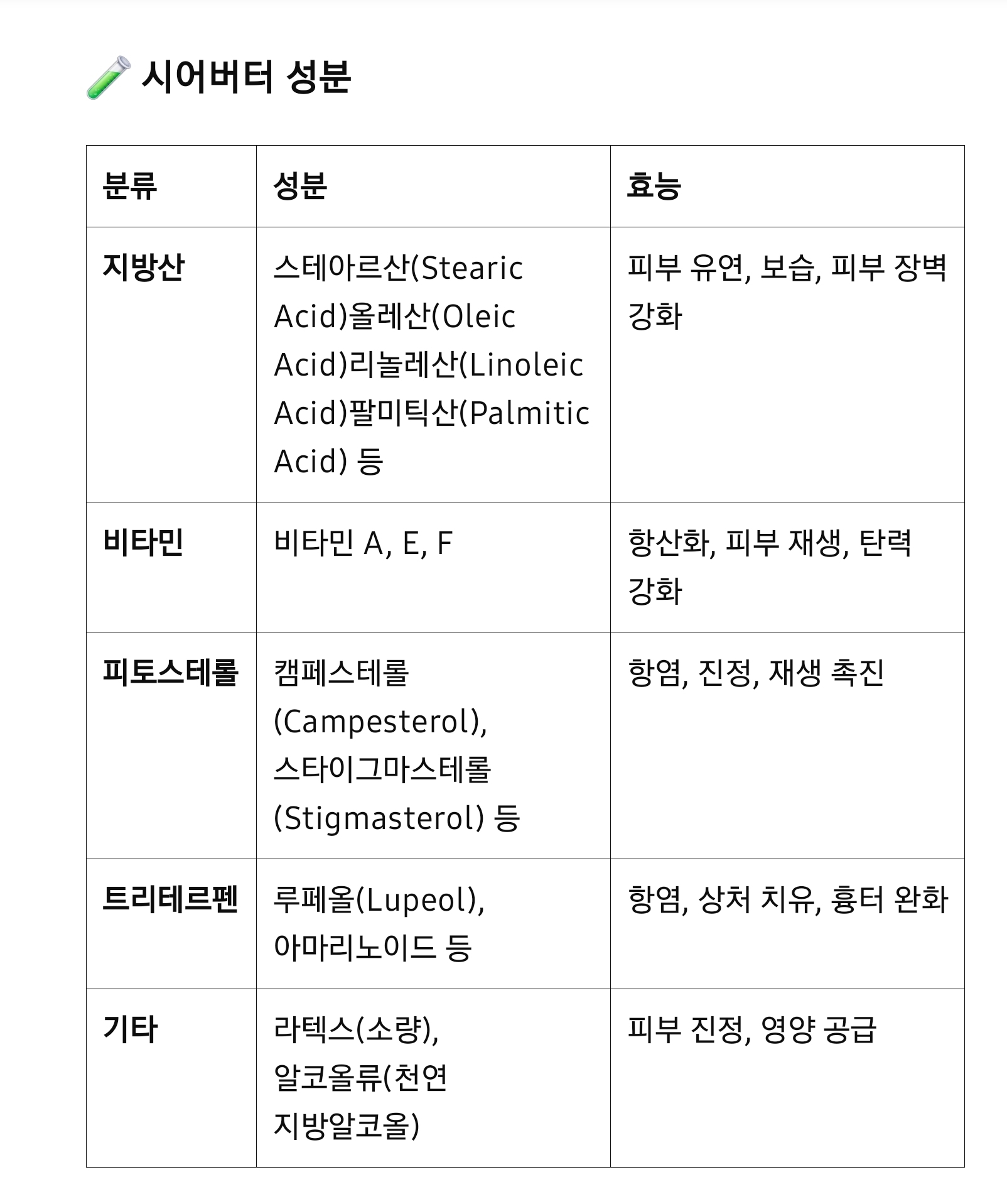 오늘은 시어버터의 효능과 함께 시너지 효과를 낼 수 있는 화장품 조합까지 정리해보았어요.