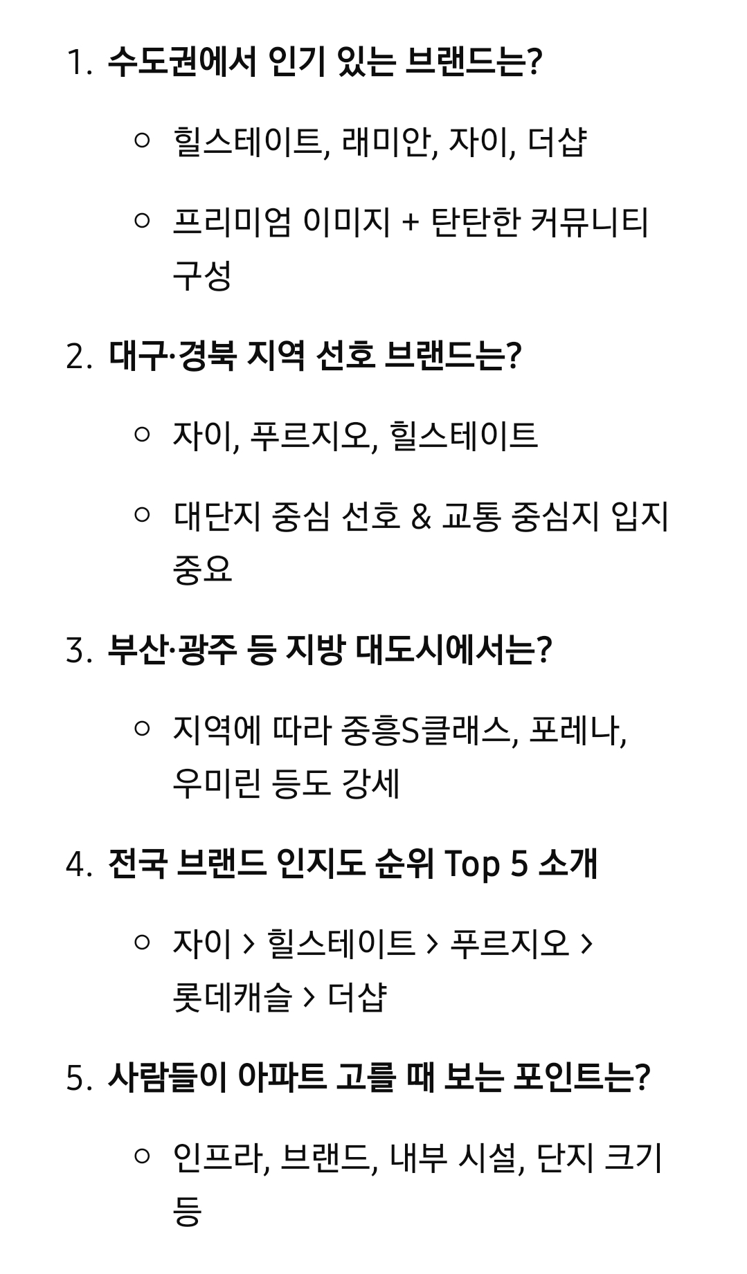 그래서 제가 관심 있게 보고 있었던 지역별 아파트 브랜드 선호도에 대해 정리해 보려고 해요.