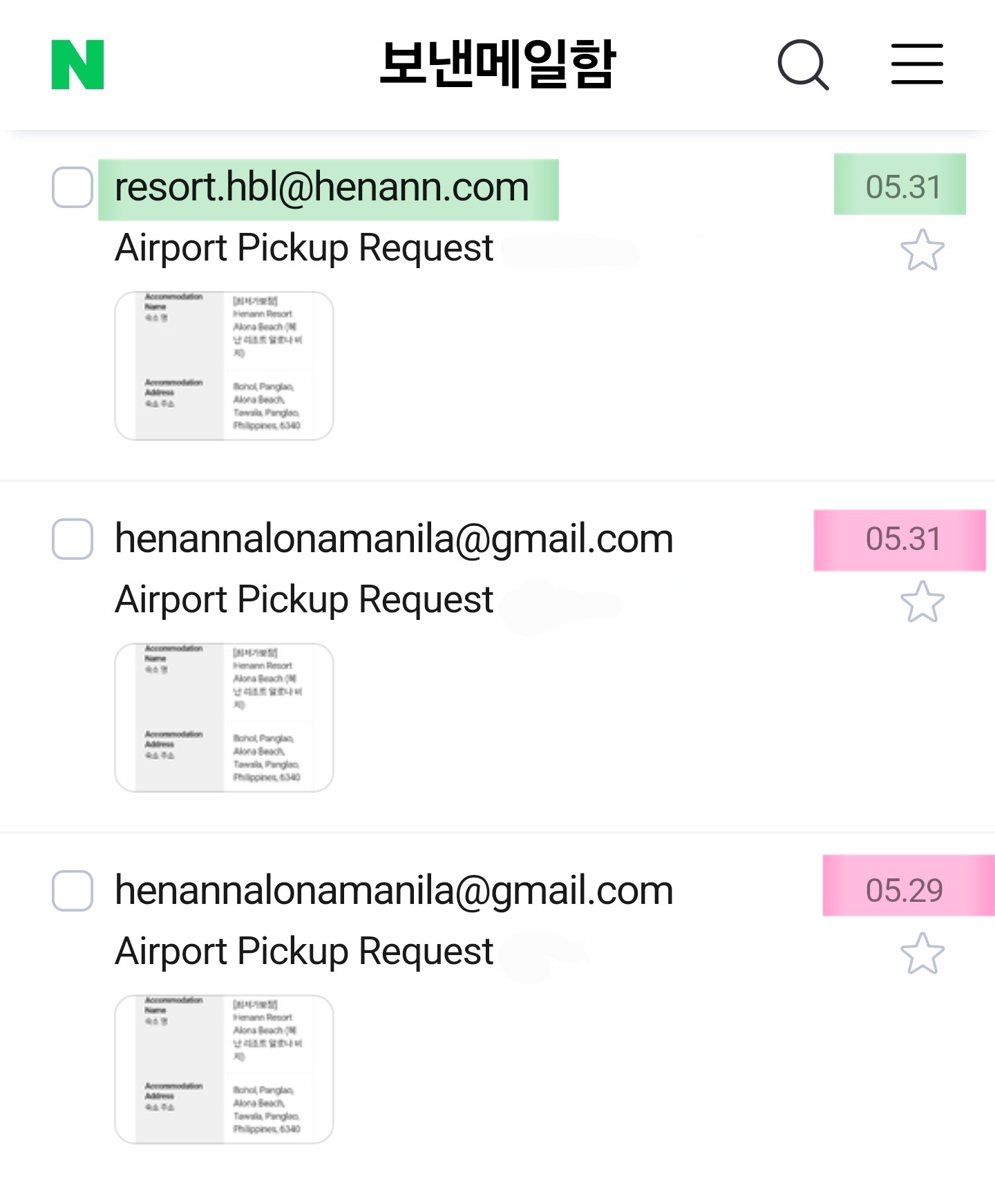 답답한 마음에 직접 검색해서 resort.hbl@henann.com 이라는 주소로 다시 보내봤더니, 놀랍게도 5분도 채 안 되어 바로 답장이 도착했어요.