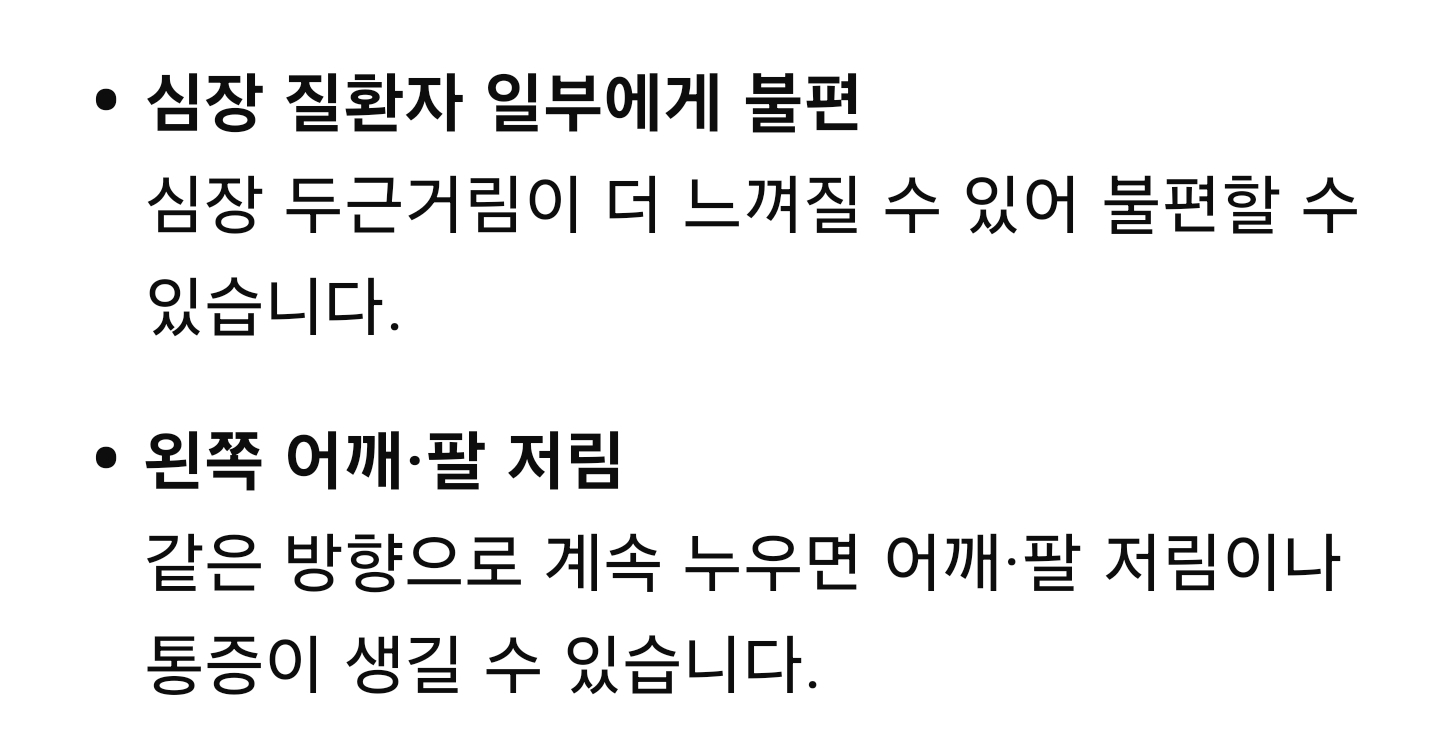 왼쪽으로 누워 자기(좌측와위)와 오른쪽으로 누워 자기(우측와위)는 각각 장단점이 있어요.