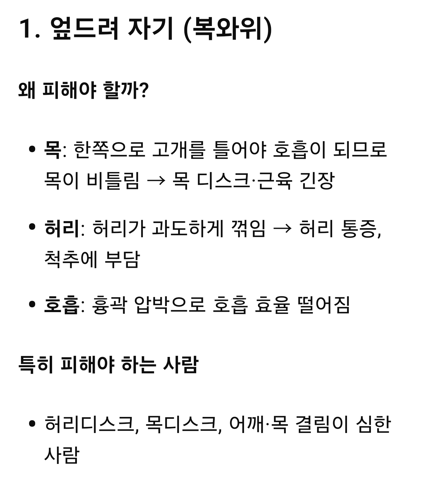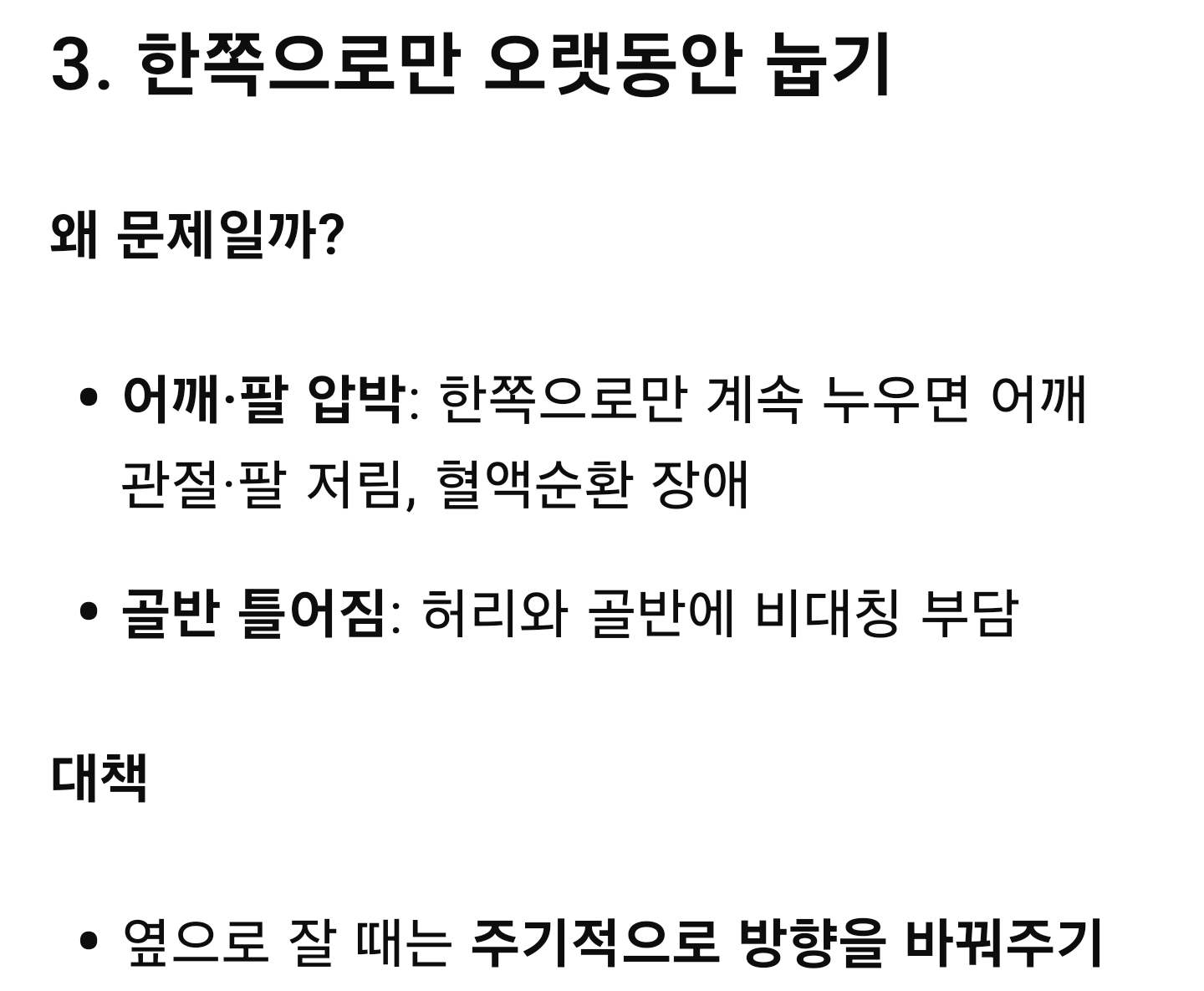 2. 오래 바로 눕기 (천장보고) – 코골이·역류 있으면 피하기