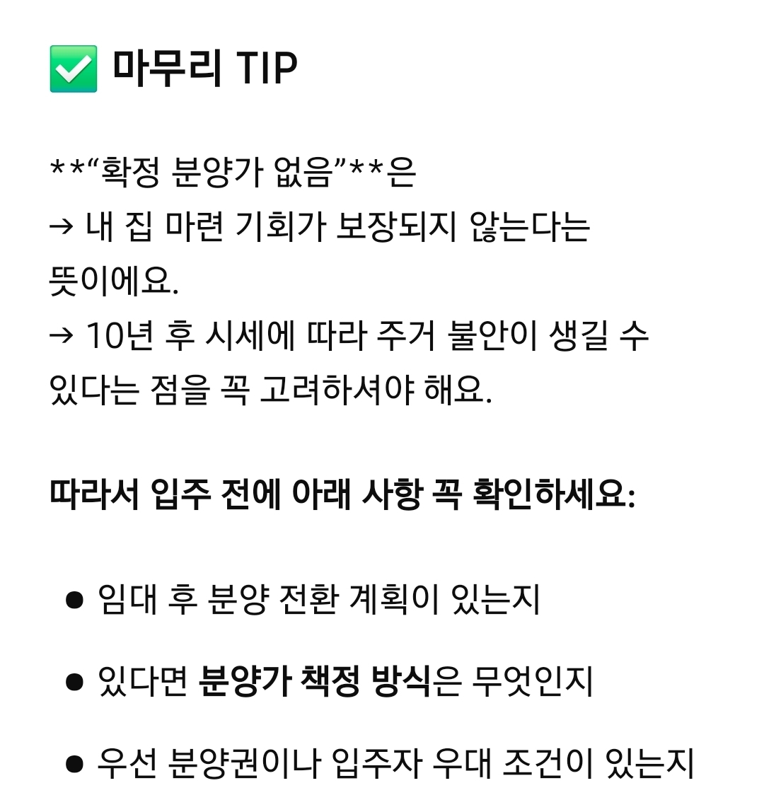 계약 전, 반드시 분양 전환 조건과 분양가 산정 방식을 확인하셔야 해요.