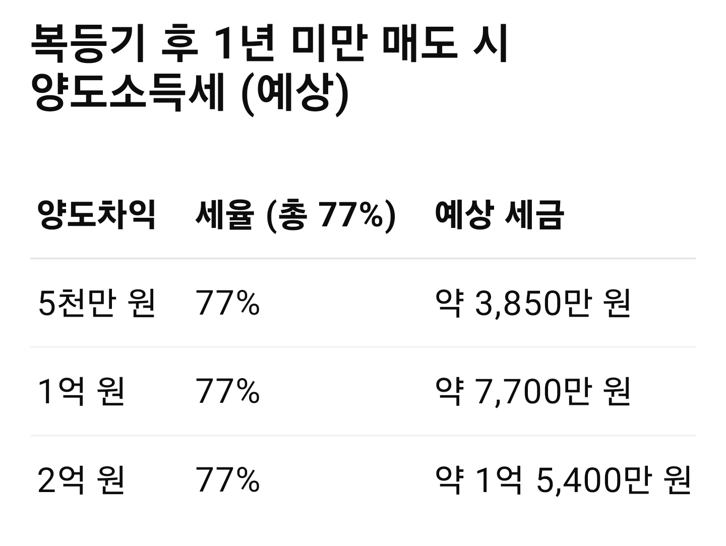 ・1년 미만 보유 시 '세율 77%'가 적용
