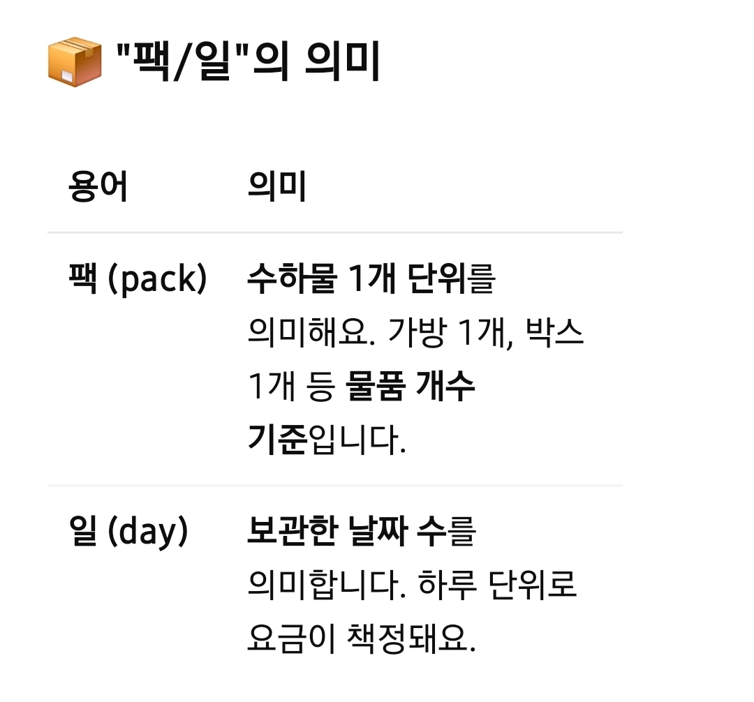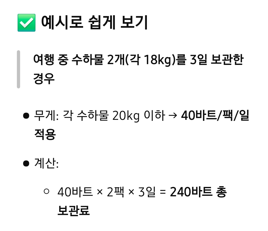 ●요금: 수하물 무게 요금 (1개 기준, 1일)