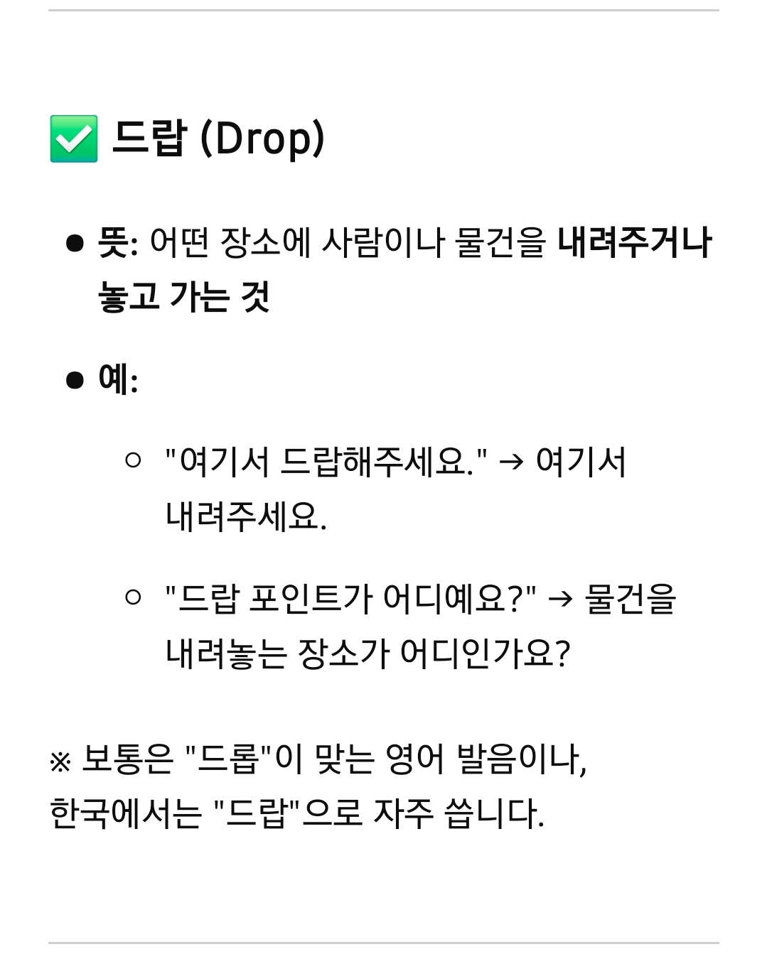 바로 "픽업", "드랍", "샌딩" 이라는 표현인데요.