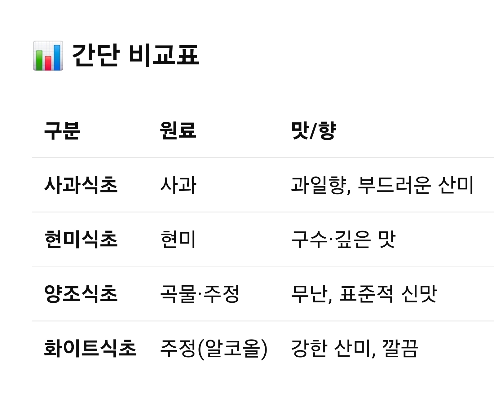 ・특징: 가장 보편적인 식초, 맛이 무난하고 가격 저렴