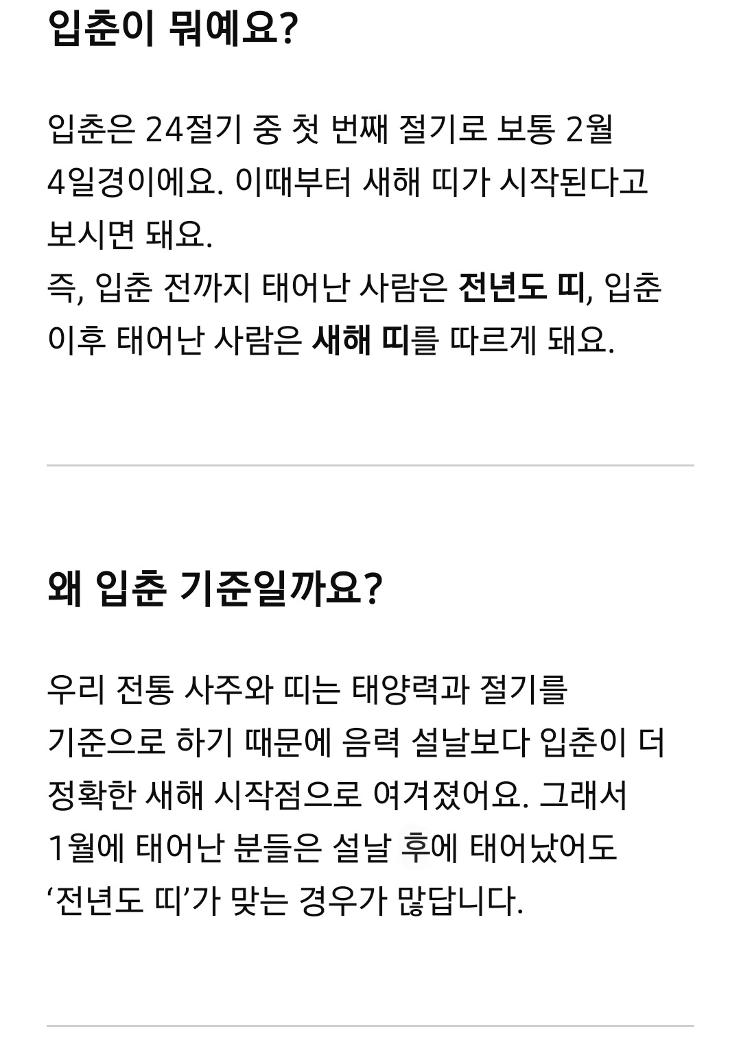 보통은 설날(음력 1월 1일)이 새해라고 생각하지만, 사실 띠는 입춘을 기준으로 바뀐답니다.