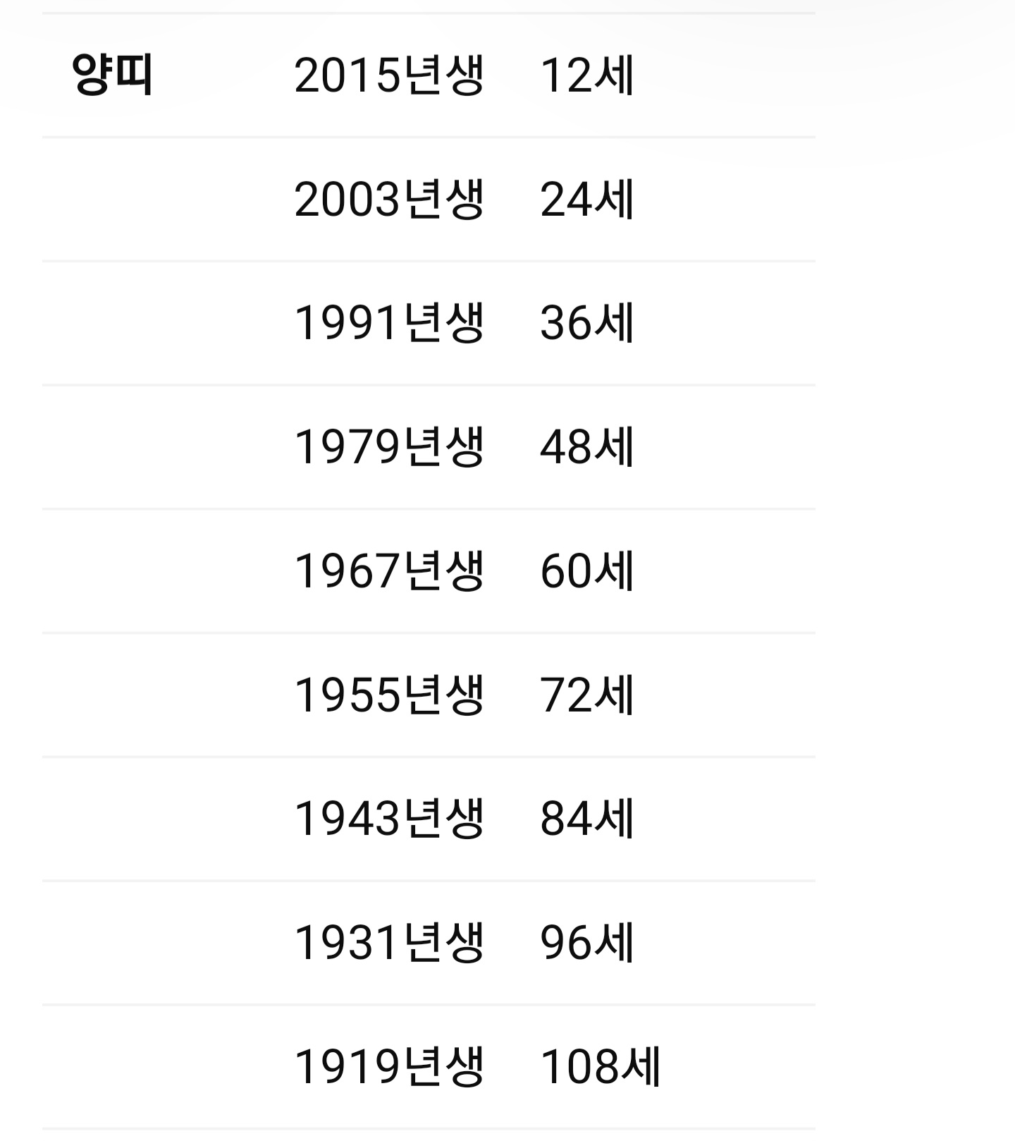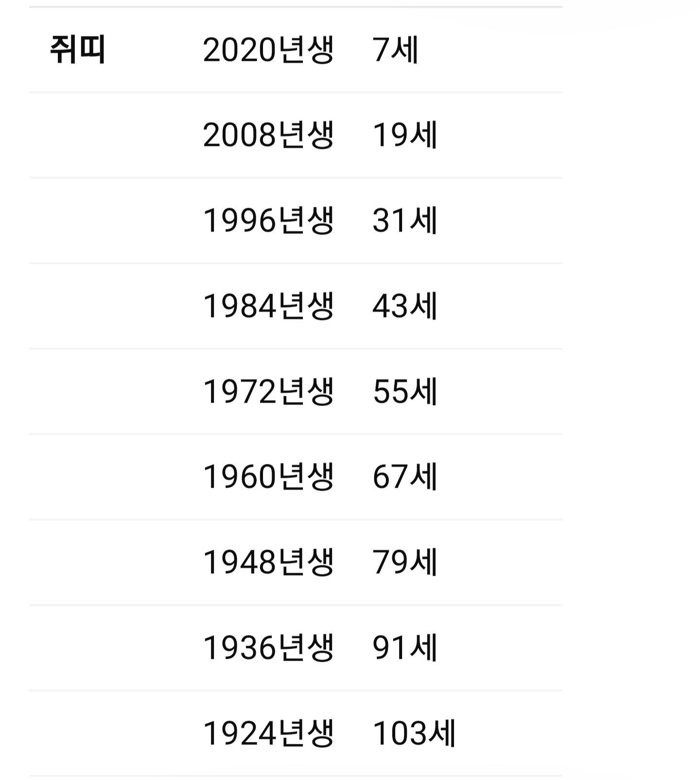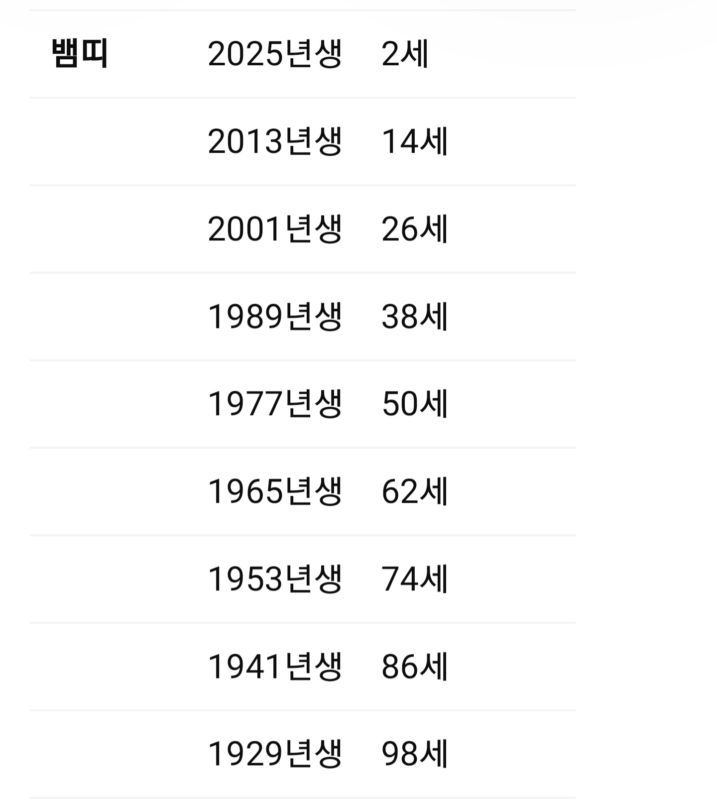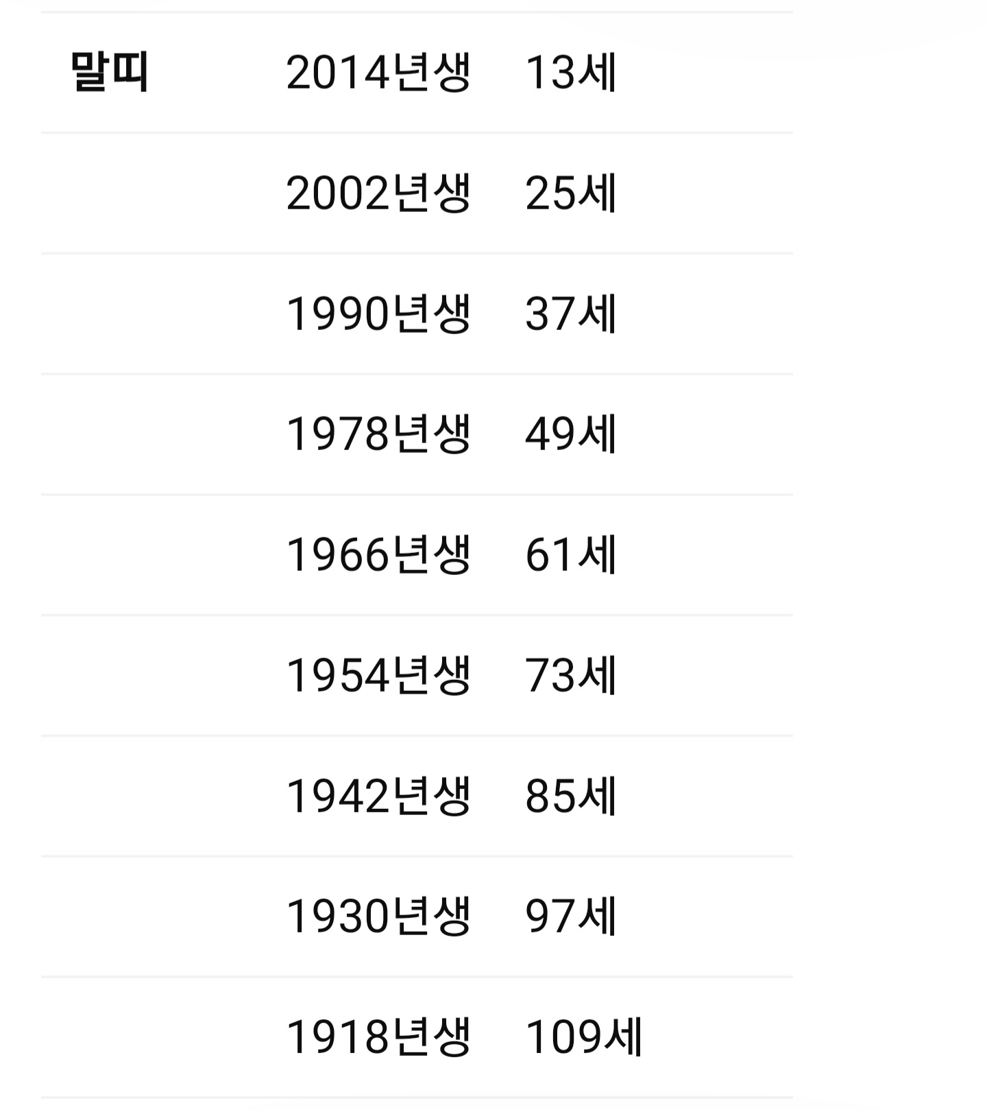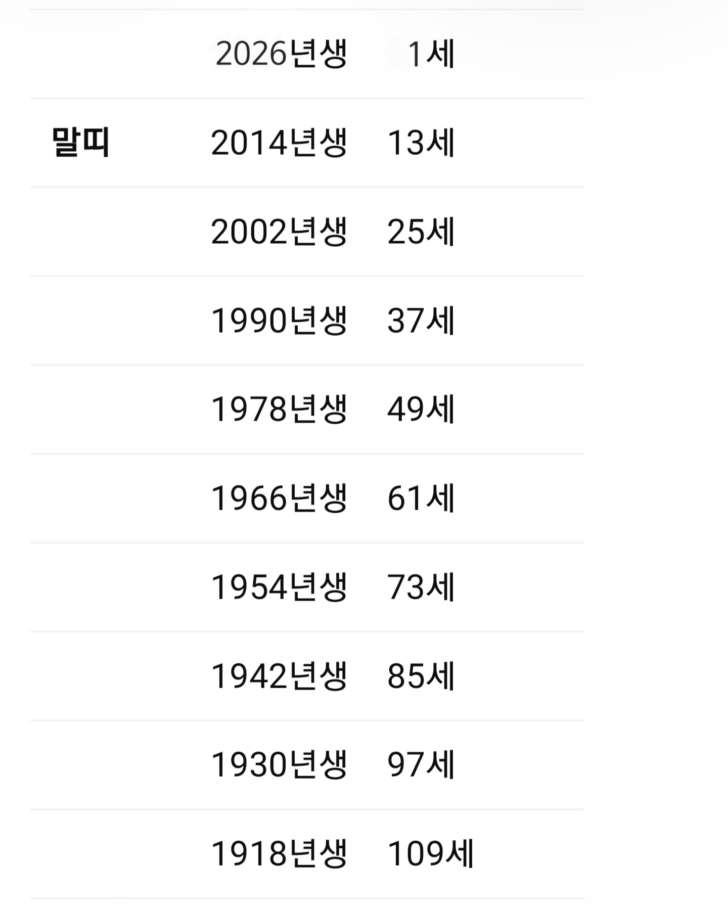 ✅️2026년 띠별 나이 (한국식 세는 나이)